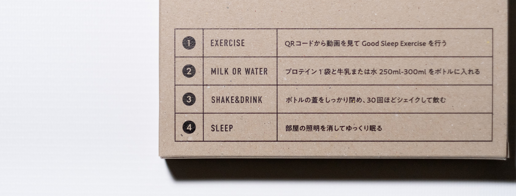 人類が長いパンデミックを経験したことで、多くの人がこれまで以上に健康について意識するようになったのではないでしょうか。 PANORAMAでは良質な睡眠にフォーカスをあて、株式会社バディトレ様とコラボレーションしプロダクトを企画、制作いたしました。 良質な睡眠を促すため、睡眠の質を上げる成分を含むプロテインと簡単にできるオリジナルのエクササイズを専門家とともに開発し、コンテンツ制作、プロダクトデザインにより全体を包括するUXを設計いたしました。 手軽に睡眠の質を上げ、健康的に一日を過ごしながらパフォーマンスを発揮してほしいという想いから考案しました。