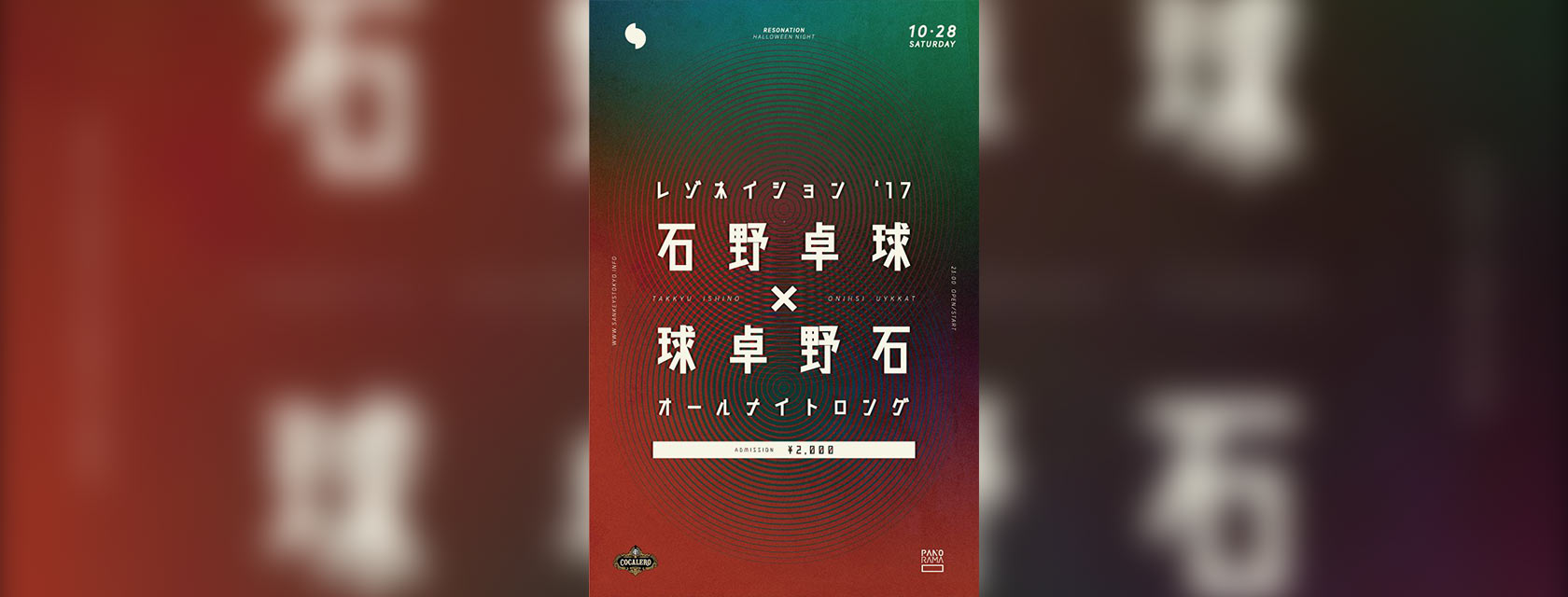 2017 年の RESONATION は街中がハロウィンのお祭りムードに染まる夜、『石野卓球×球卓野石』と銘打ち、これまでにない独自の個性をより遺憾なく発揮するパーティを開催しました。