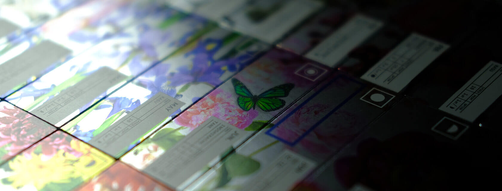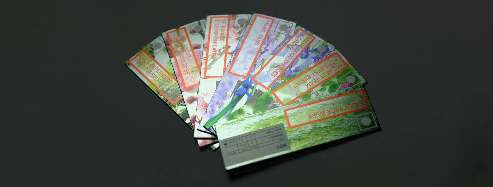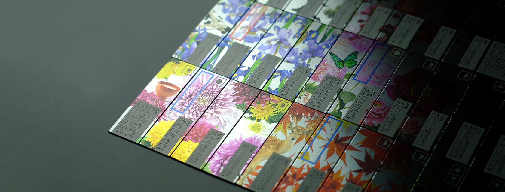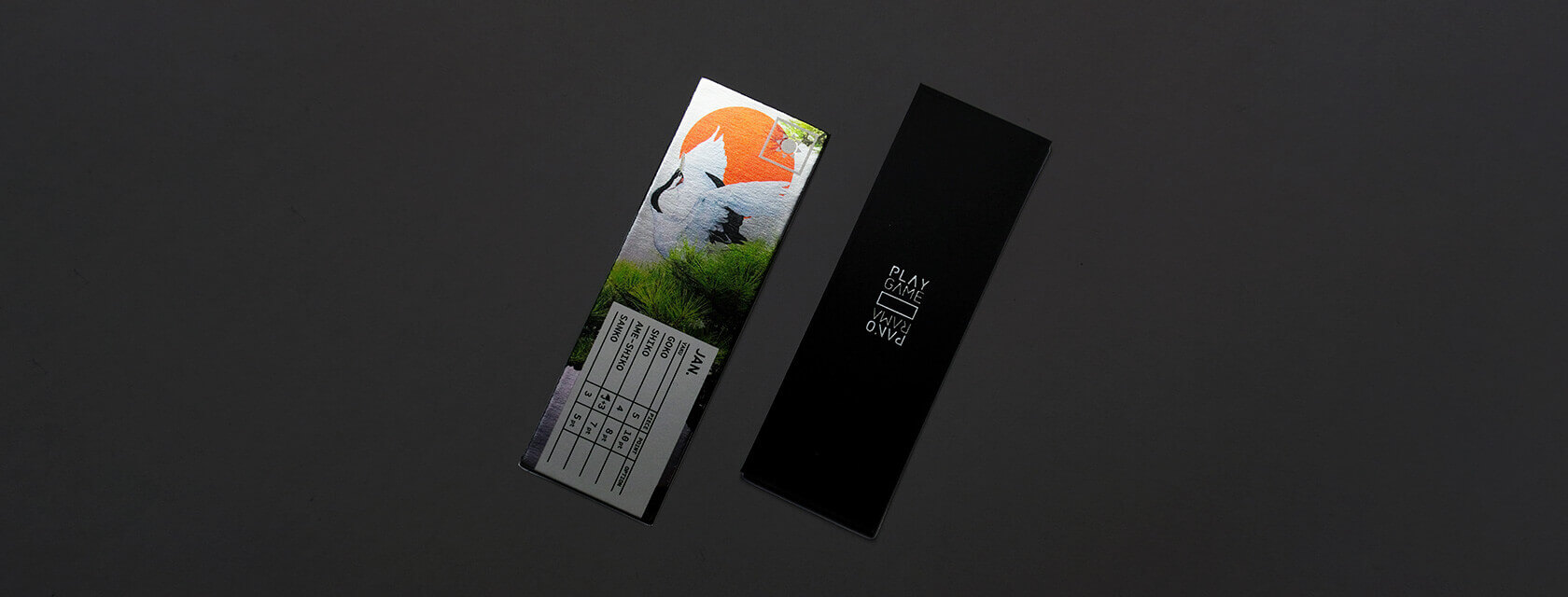 花札独特の絵柄を写真表現し、シルバー紙に印刷を施すことで、見る角度により表情が変わる仕様にし、PANORAMAのVISIONでもある「景色を変える。景色が変わる。」を表現しております。