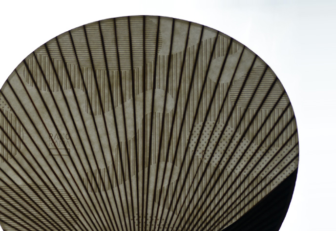 房州うちわは「窓」が特徴です。丸亀うちわは基本、持ち手となる柄が平らなため竹を割いてそのまま骨を開いても平らに広がります。京うちわも骨に和紙を貼ってから柄を取り付けるため、骨を平らにする手間はあまりかかりません。