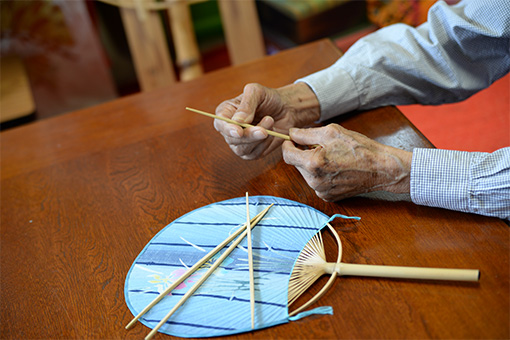作業工程上、最も難しいのは「弓」を作ることです。弓のしなりはうちわを支える船底であり、しっかりしなっていないと指を掛けて扇いでも、うちわ自体がよく曲がらず扇ぐ力も出ません。しかし製作時、弓を上手く削らないと曲げたときにしならず簡単に折れてしまいます。