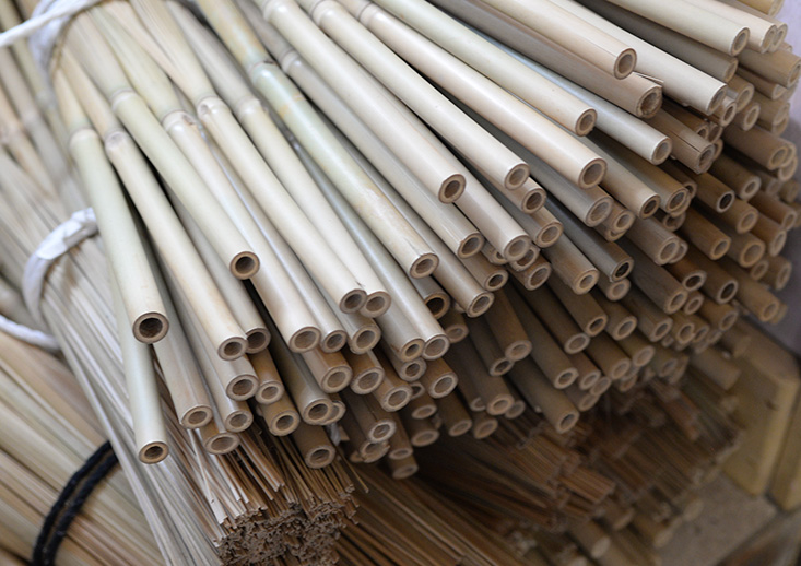 うちわに使う竹は、この地域に自生する女竹(めだけ)を使っています。竹は国や県、個人が所有する山に自生しているものを譲ってもらうのですが、切るのは毎年10~12月の期間だけです。